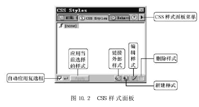 在菜单栏中选择“Window"→“CSSStyles"命令(或单击微型启动面板上的图标),打开css样式面板,如图所示。